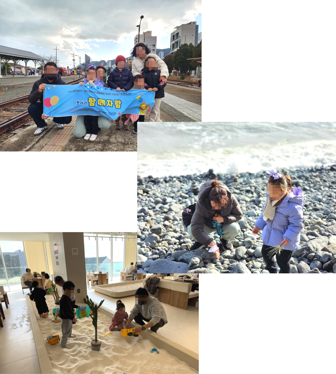 어느새 해를 넘겨, 마지막 1월 활동을 진행하였습니다. 1월에도 키즈카페, 블루라인파크, 수산과학관등을 방문하여 아이들이 자연에서 뛰어놀며 다양한 활동을 통해 가족들과 상호작용할 수 있는 방법들을 배울 수 있는 좋은 경험이 되었습니다!
