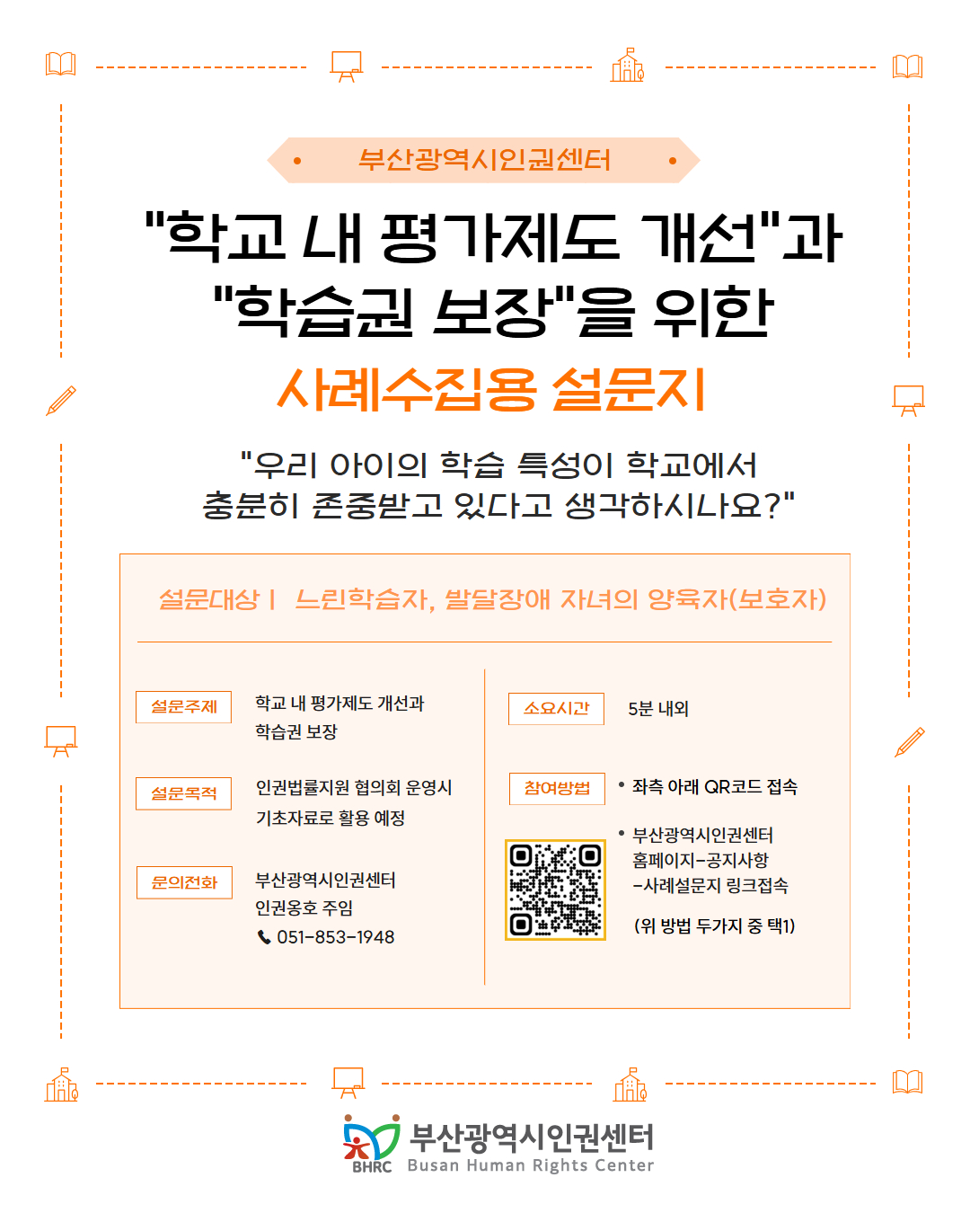 [부산광역시인권센터] 느린학습자, 발달장애 자녀 양육자(보호자) 대상 설문조사(9/1~9/17)