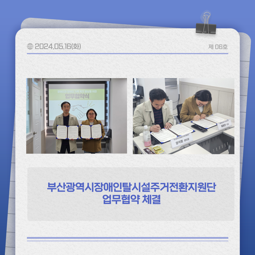 💙 2024년 5월 '부산광역시장애인탈시설주거전환지원단' 업무협약 체결 |