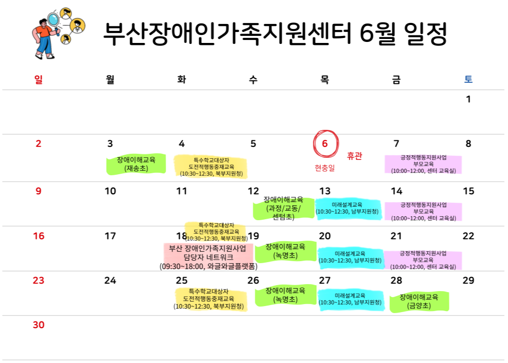부산 내 위치한 초등학교/중학교라면 어디든지 O.K~! 다년간의 강의 경력을 보유한 강사님과 연계하여 장애이해교육을 진행할 예정이니 많은 신청 부탁드립니다. 많.관.부. 💛